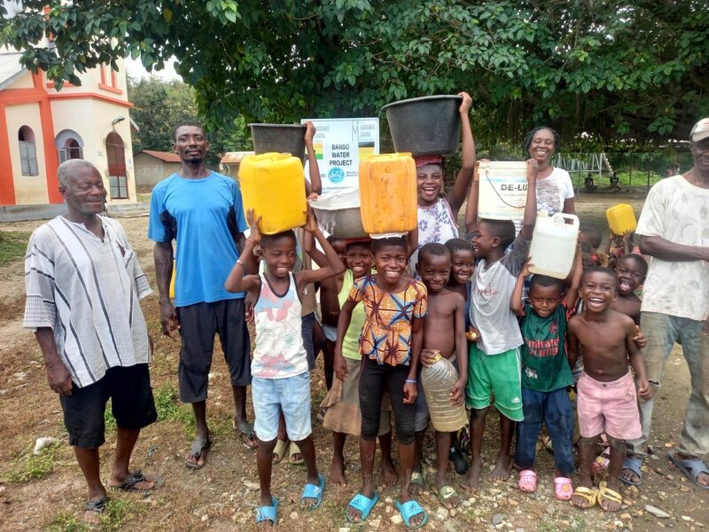 Gemeint sind die drei Brunnen, die wir im Jahr 2012 bei unserem ersten Brunnenbauprojekt bauten. Zusammen mit dem Verein Madamfo Ghana e.V. entstanden in den Gemeinden Banso, Dompa und Hantaase Wasserversorgungen und Tanks zur Bevorratung von sauberem Trinkwasser.